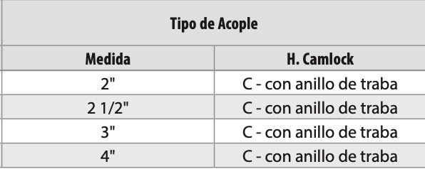 Los Acoples de Aluminio Camlock permiten conexiones rápidas y seguras en sistemas de transferencia de fluidos, facilitando el montaje y desmontaje de las mangueras.