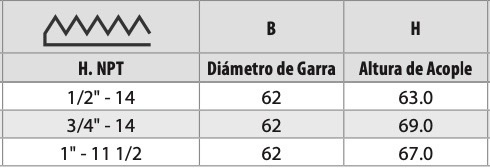 Este Acople Garra con rosca Hembra NPT es ideal para conexiones seguras en sistemas neumáticos y de agua, garantizando un ajuste hermético y resistente.