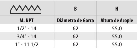 El Acople Garra Tipo Americano con rosca Macho NPT permite una conexión segura y eficiente en sistemas neumáticos y de agua.