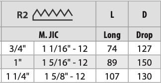 Conecta bridas de Código 61 con macho JIC en un ángulo de 90° largo, permitiendo una mayor flexibilidad en la disposición de las líneas hidráulicas.