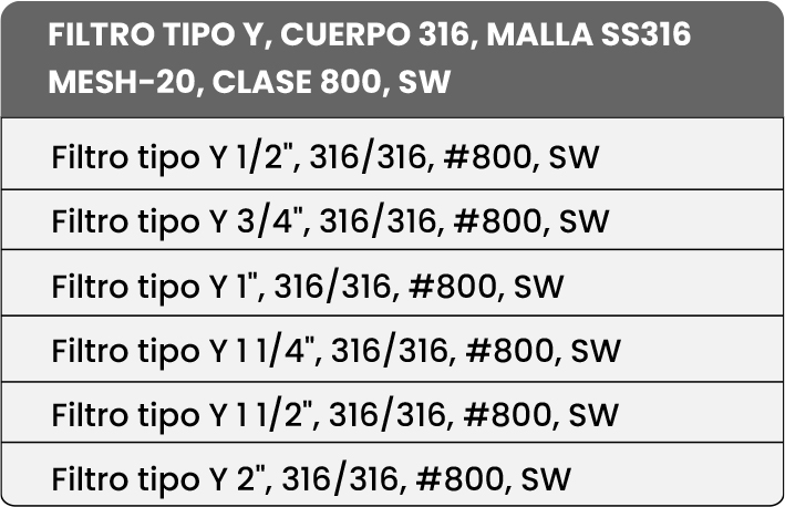 El Filtro Tipo Y 316 Socket Weld está fabricado completamente en acero inoxidable, ofreciendo una excelente resistencia a la corrosión, altas temperaturas y presiones elevadas. Su diseño compacto y conexión soldada garantizan estanqueidad total, lo que lo convierte en una opción ideal para líneas críticas de vapor y fluidos industriales.