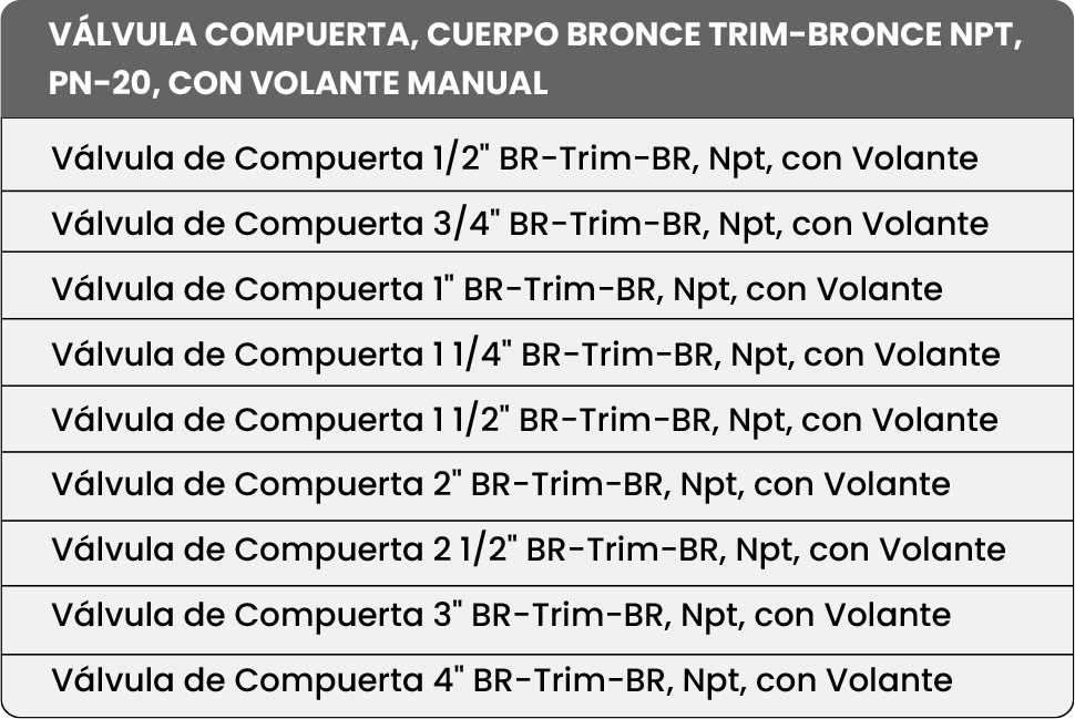 La Válvula de Compuerta OS&Y de Bronce NPT está diseñada para brindar un cierre confiable y duradero en líneas de conducción de agua y fluidos generales a presión moderada. Fabricada en bronce con interior Trim-Bronce, ofrece buena resistencia mecánica y a la corrosión en condiciones de uso habitual. Su conexión roscada NPT asegura un montaje seguro y práctico en sistemas industriales y domésticos.