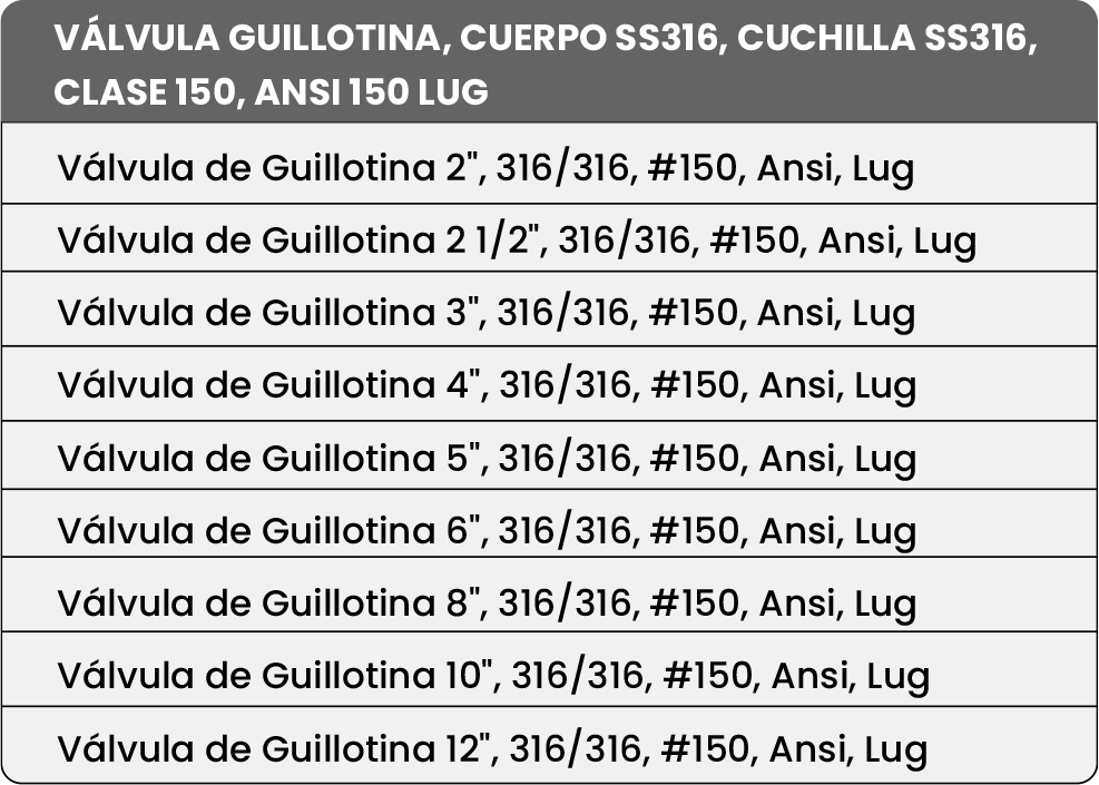 La Válvula de Guillotina Inoxidable 316 Unidireccional está diseñada para un control eficiente en aplicaciones industriales que requieren resistencia a la corrosión y desempeño confiable. Fabricada en acero inoxidable SS316 CF8M, asegura durabilidad en condiciones exigentes y un sellado seguro en sistemas críticos.